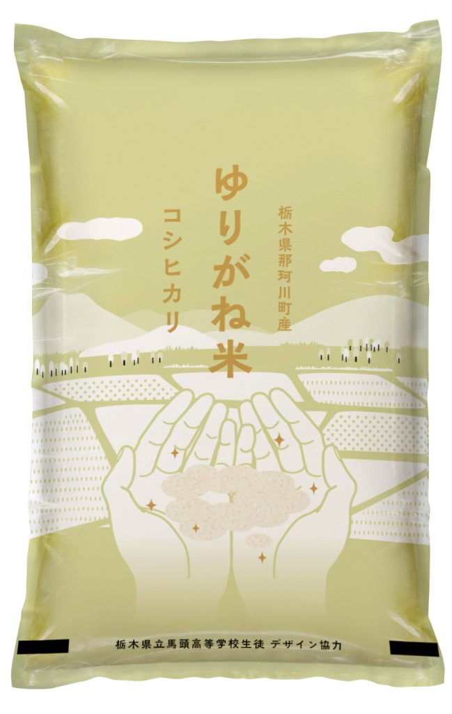 また、「ゆりがね米」の名前やパッケージデザインは、栃木県立馬頭高校の生徒さんとお米の生産者さんが協力して作成しました。